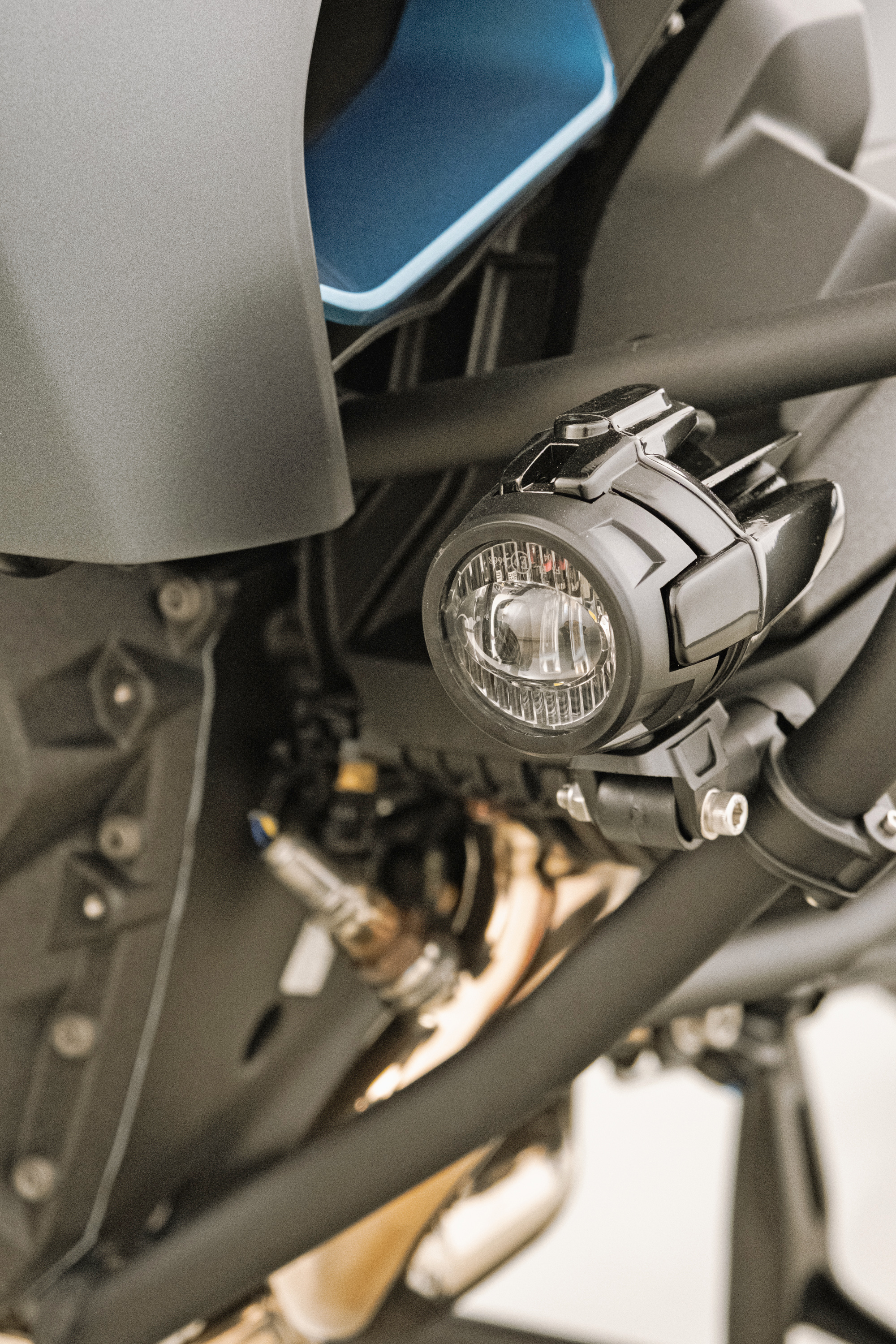 Our LED auxiliary light kit provides additional visibility. Modern LED technology enables intense illumination at night, while during the day, the motorcycle's presence is significantly increased for other road users. The wide beam of light also covers the edge of the road. High-quality LED chips and an aluminum housing ensure a long service life. Due to the sealed construction, the lights meet the waterproof IP67 standard.