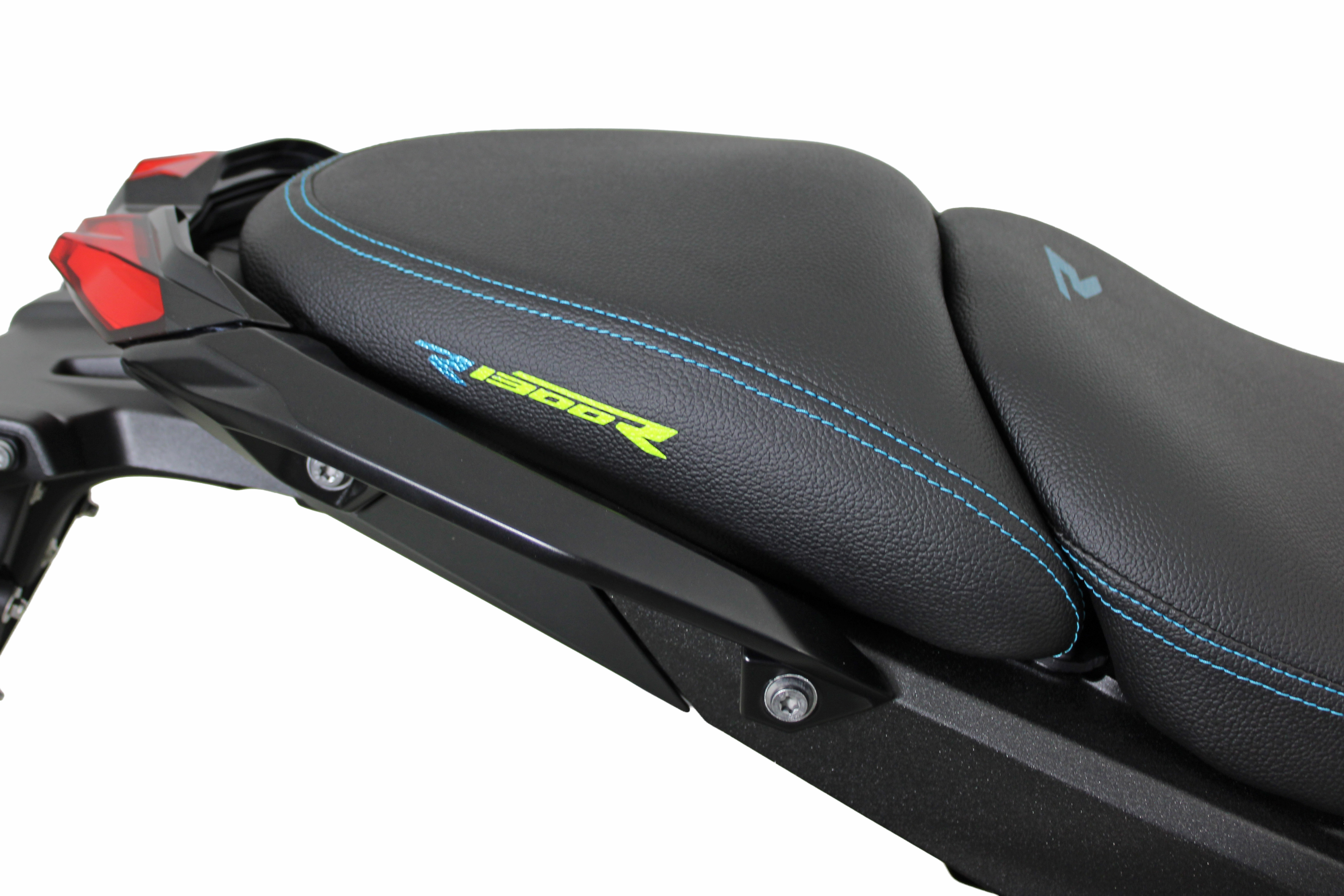 A particular highlight in terms of individualization is our seat conversion. For the rider seat conversion, we use high-quality double stitching combined with "R" lettering, creating a sporty and elegant look. The pillion seat conversion also consistently adopts this design and is also executed with precise double stitching and lettering on both sides. This concept is complemented by the refined center tank section, which, newly upholstered with quilted elements, double stitching, and matching lettering, harmoniously rounds off the overall image. The result is a consistent, sophisticated design and a perfect combination of style and sportiness.