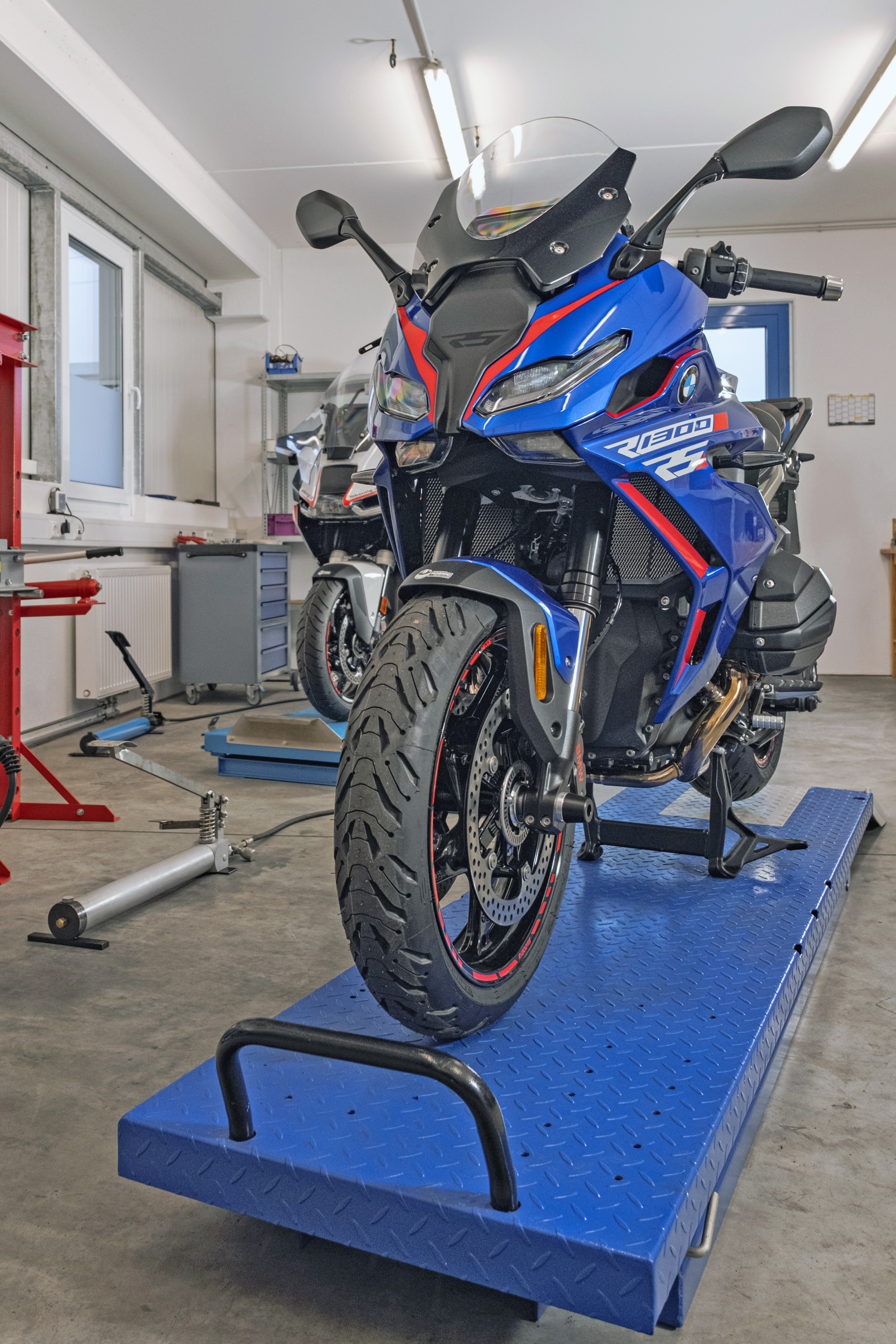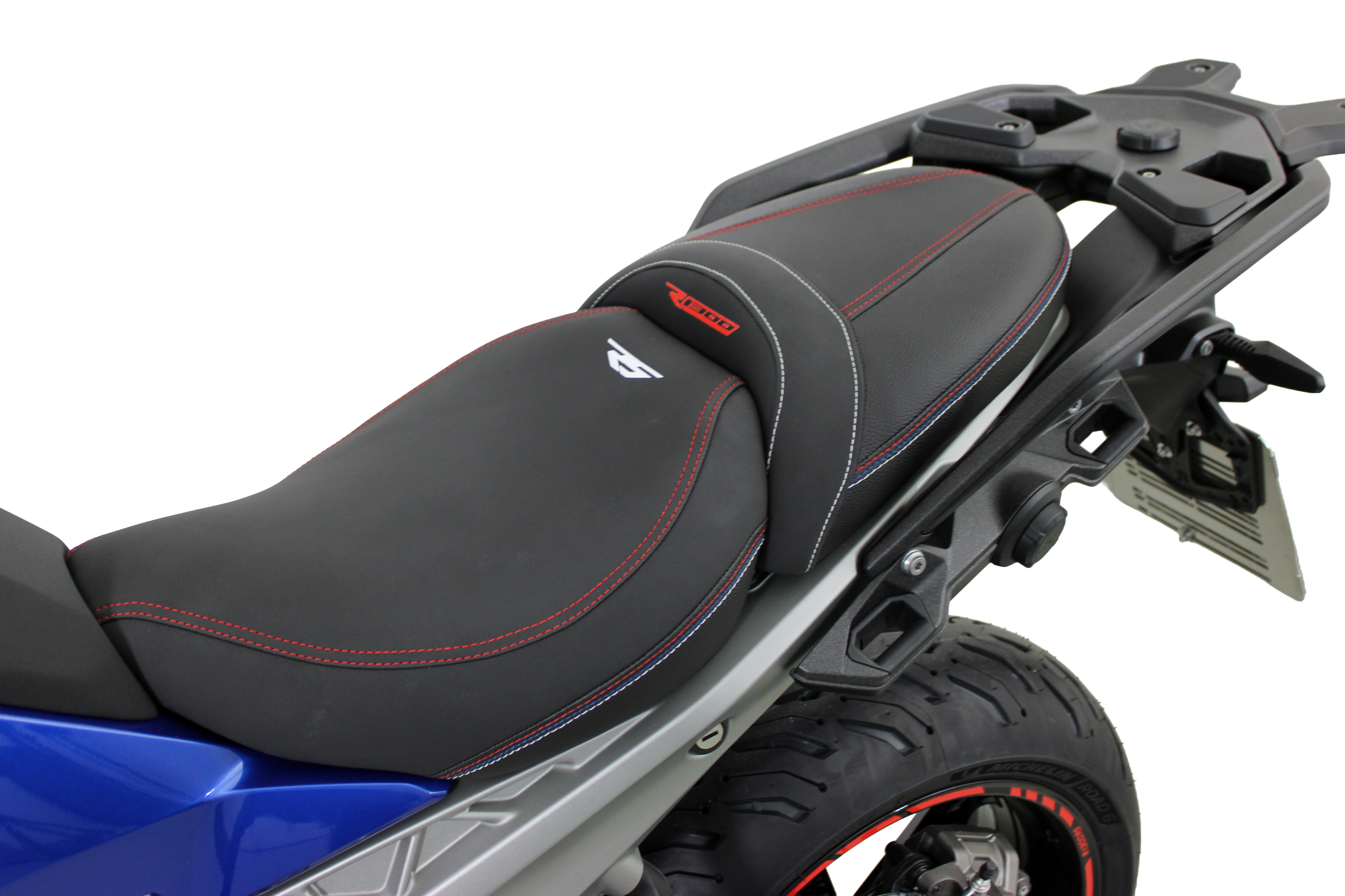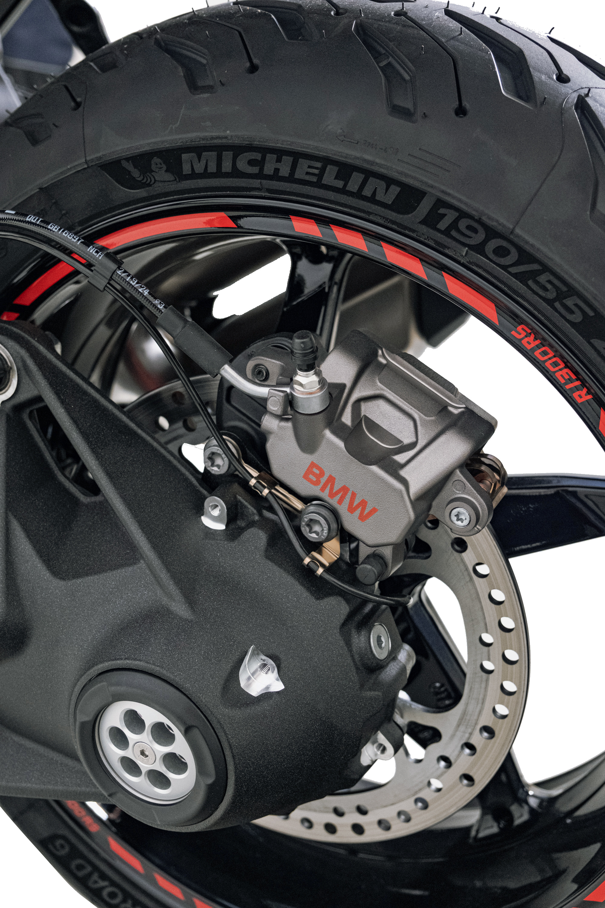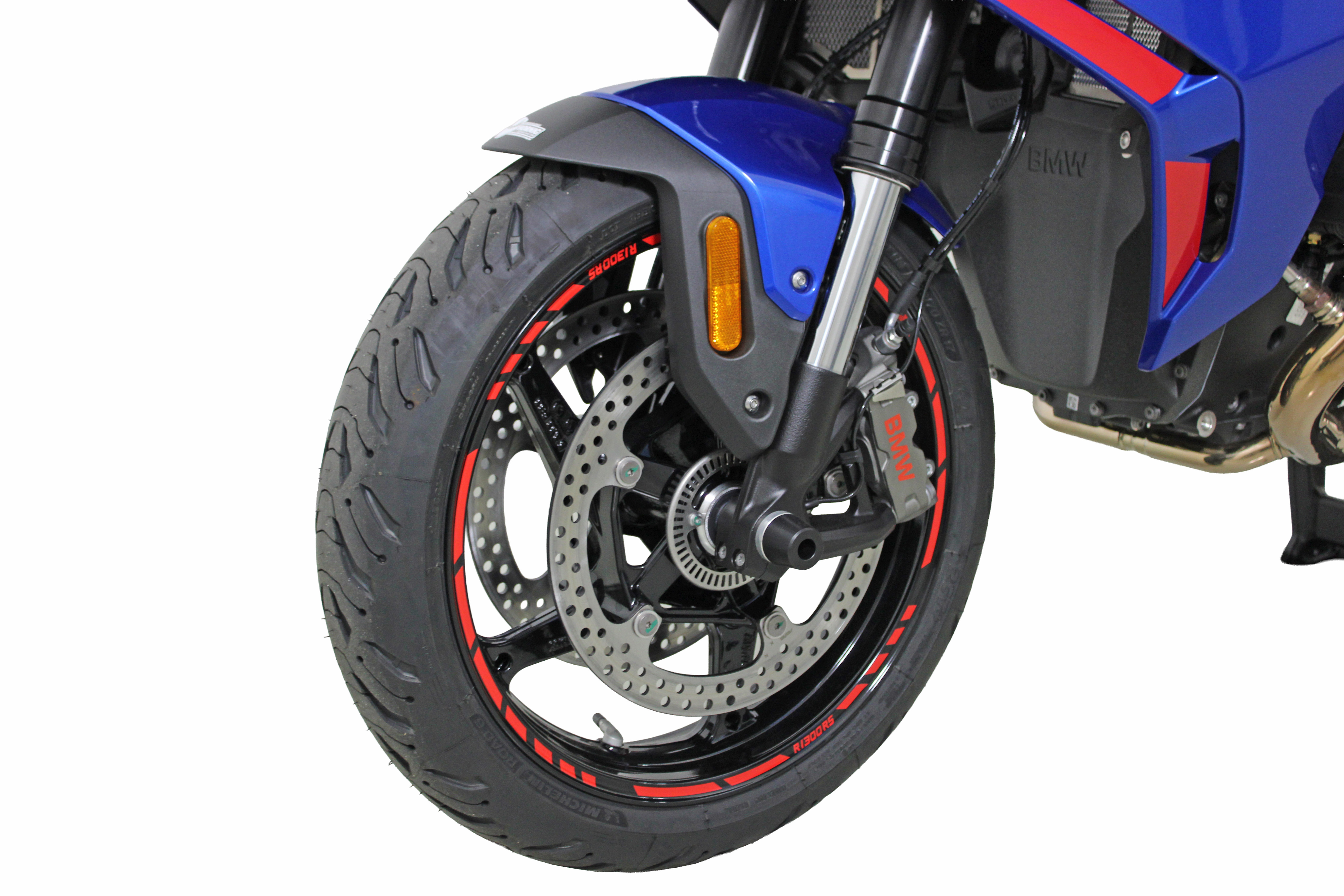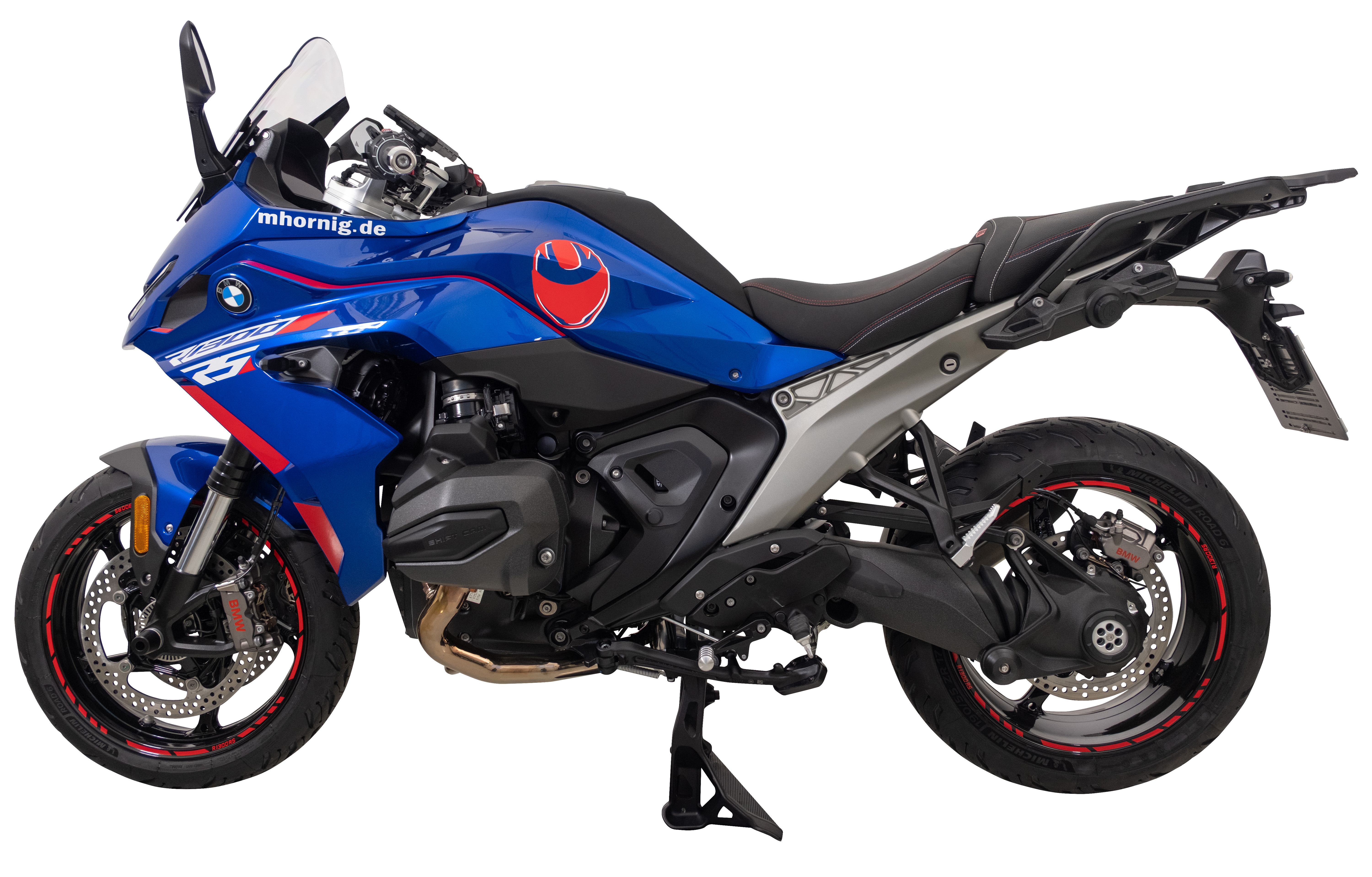 The appearance is rounded off by the red rim stripes and the decorative sticker set. They specifically emphasize lines and surfaces and give the BMW R1300RS an independent visual presence without overshadowing the original design.