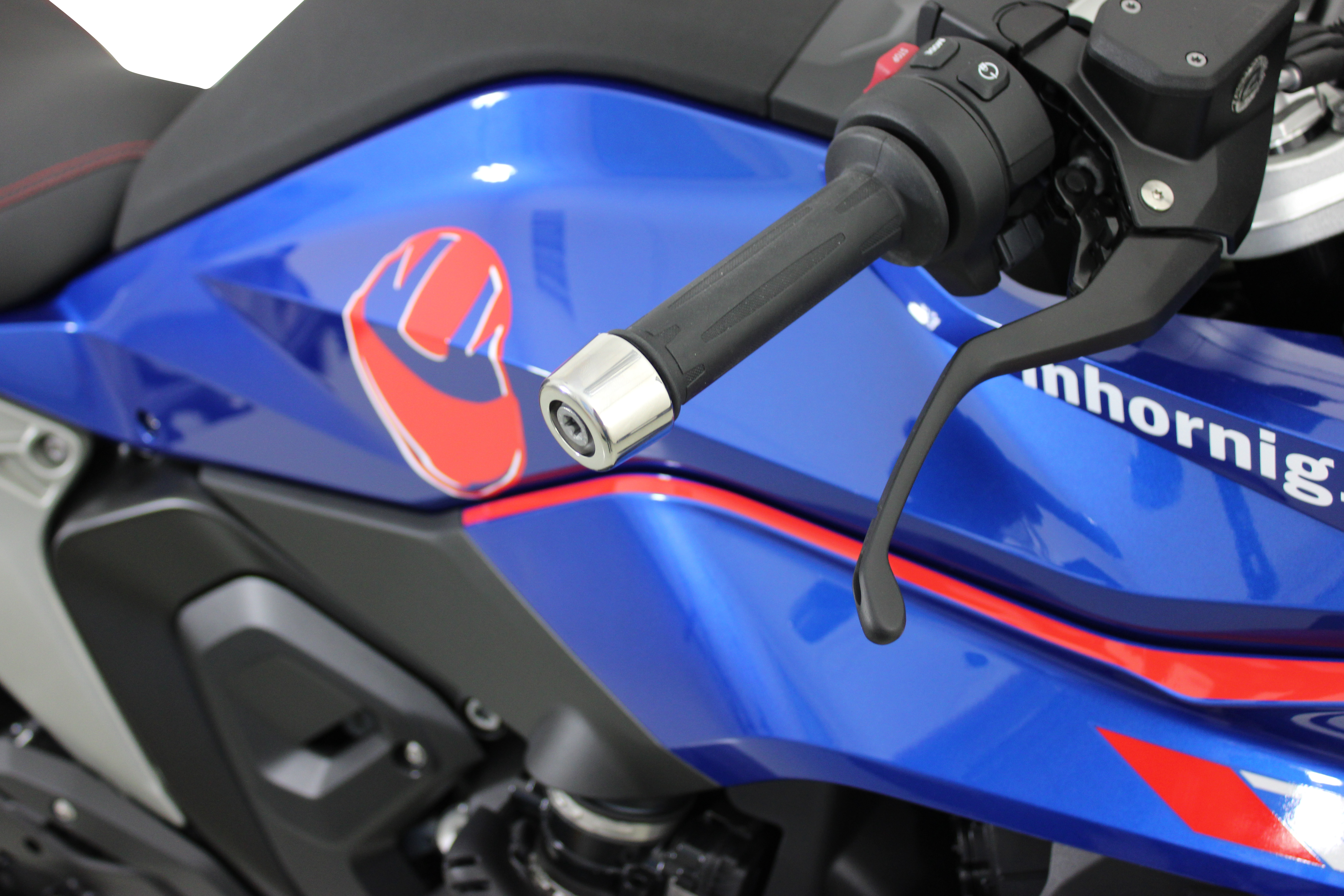 In addition to function and comfort, specific details shape the character of a motorcycle. The wheel axle cover with emblem sets a striking accent and combines visual enhancement with an additional functional benefit, as the increased airflow, based on the drillings, has a positive effect on cooling. The stainless steel handlebar end weights help to further optimize the look of the motorcycle without changing the proportions.